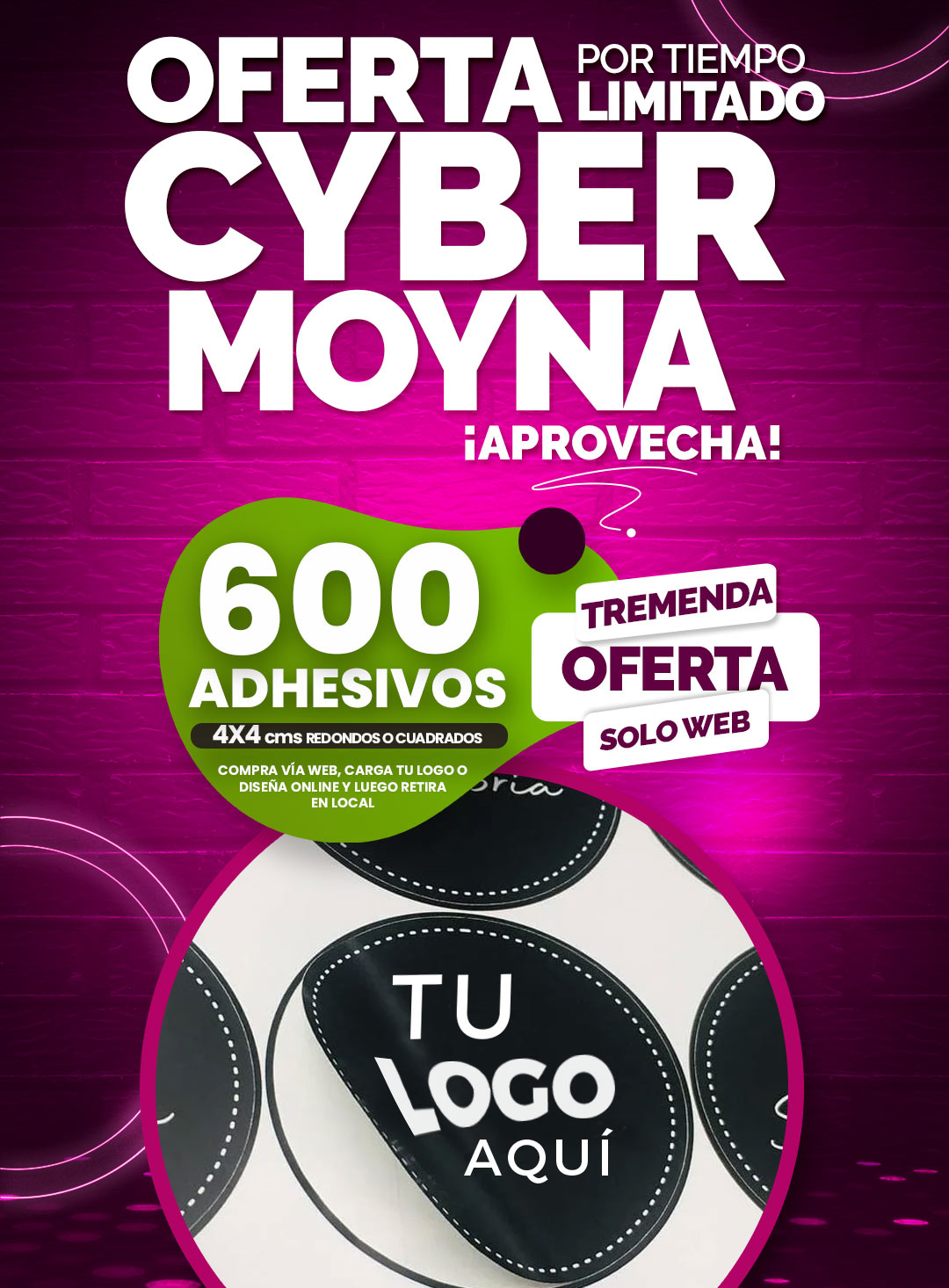 Nota: la entrega de los adhesivos se realiza en paños según el troquelado (corte) deseado (redondos o cuadrados).